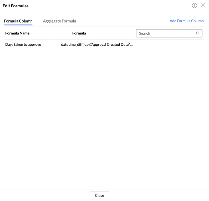 Analytics Plusの強力な数式エンジンを使ってレポートの数式を定義し、要件に合わせたレポートを作成することができます。詳細は、「数式を追加」を参照してください。Jira Service Managementモジュールに基づいて作成されたデフォルトの数式もいくつかあります。デフォルトの数式を表示するには、対象のテーブルを開き、[追加]をクリックして、[数式を編集]オプションを選択します。