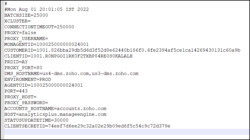 <Databridgeインストールフォルダー>/ManageEngineDatabridge/Conf フォルダーに移動します。- serveragent.configファイルを開きます。