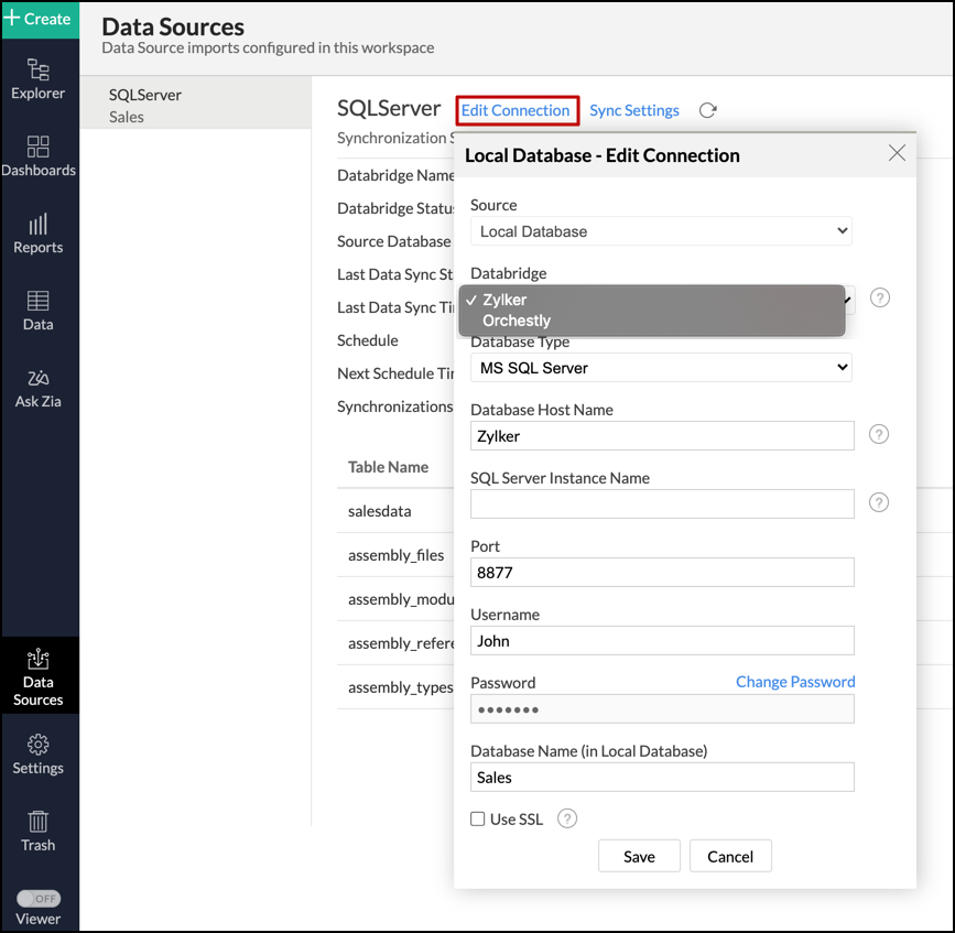 ManageEngine Databridgeは、利用中のローカルデータベースとAnalytics Plus Cloudを接続して簡単なデータインポートを可能にする、軽量かつ独立型のユーティリティです。Databridgeにより、MySQL、MS SQLサーバー、Oracle、MariaDB、PostgreSQL等の、ローカルまたはホステッドデータベースから既存のデータを簡単にインポートできます。データをAnalytics Plusにインポートする元となるデータベースのリストについての詳細は、「Import data from Local databases」を参照してください。