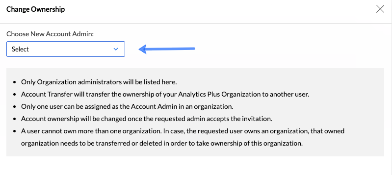 表示されるダイアログで、新たなアカウント管理者を選択します。 - [申請を送信する]をクリックすると、選択したユーザーは通知を受け取ります。