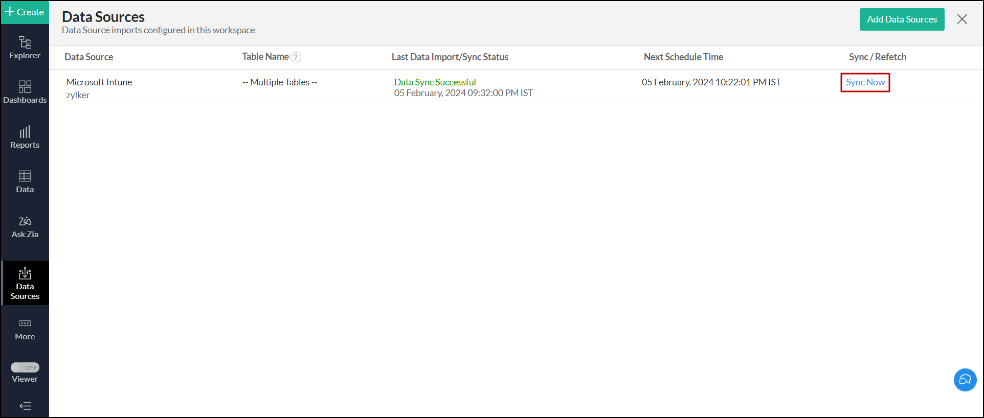 はい。これを行うには、サイドパネルの[データソース]オプションをクリックします。表示されるページで、Microsoft Intuneソースに移動し、対応する[今すぐ同期]ボタンをクリックします。