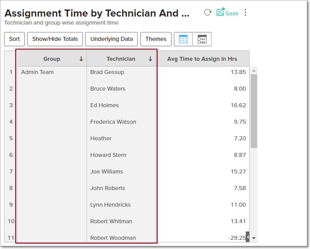 ピボット テーブルでは、大量のデータを動的に要約して、簡単に分析および視覚化できます。ManageEngine Analytics Plus が提供する直感的なドラッグ アンド ドロップ インターフェースを使用して、テーブル内のデータを簡単に意味のある概要に変換できます。ピボット テーブルでは、必要な方法で値を簡単に集計およびフィルター処理できます。