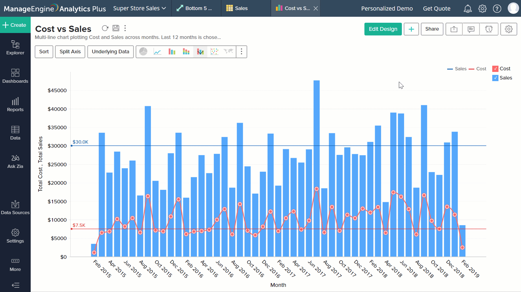 Analytics Plus Cloudを使用して作成したテーブル、レポート(グラフ、ピボットレポート、表形式レポート、要約レポート)、クエリテーブル、ダッシュボードを埋め込むことができます。Analytics Plus Cloudで作成したレポートを埋め込むには、Analytics Plus Cloudでレポート用に生成されたHTMLコードのスニペットを取得し、埋め込み先ページのHTMLタグ内に貼り付けます。