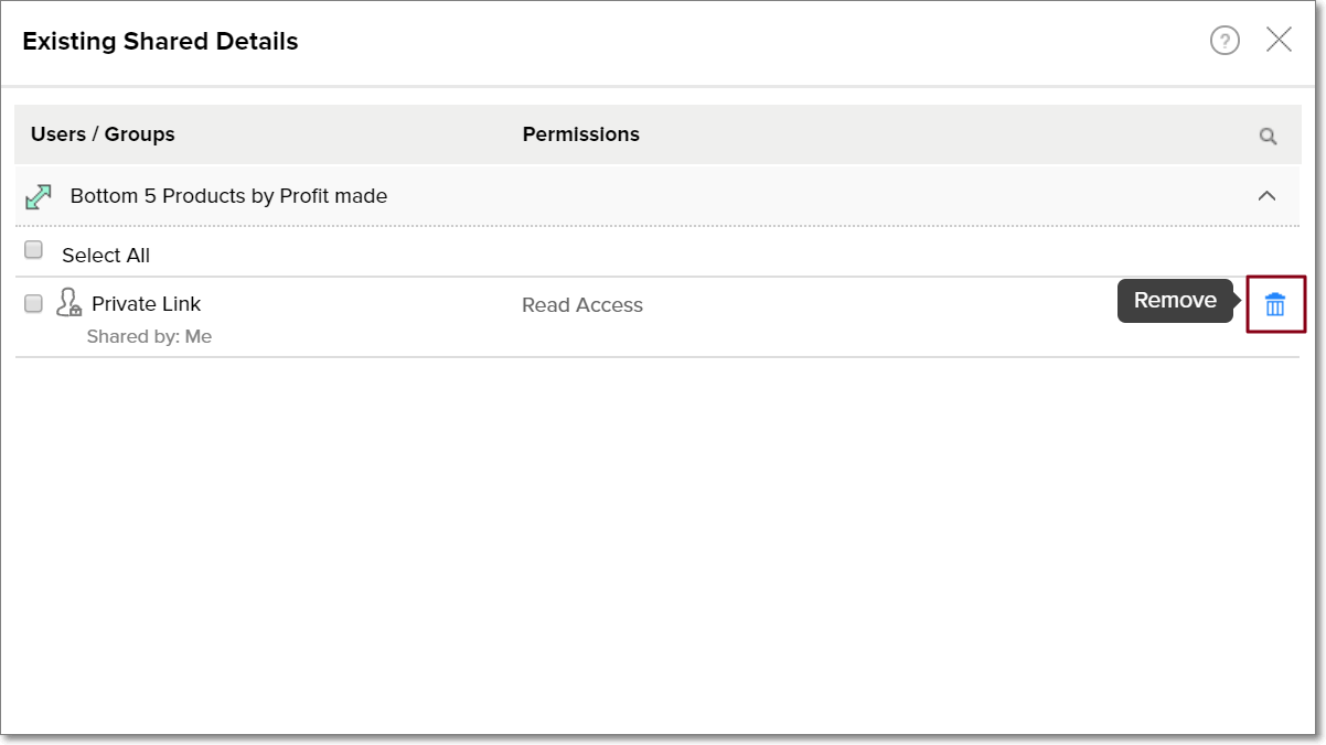 埋め込みレポートのアクセス権限を削除する手順は、以下のとおりです。