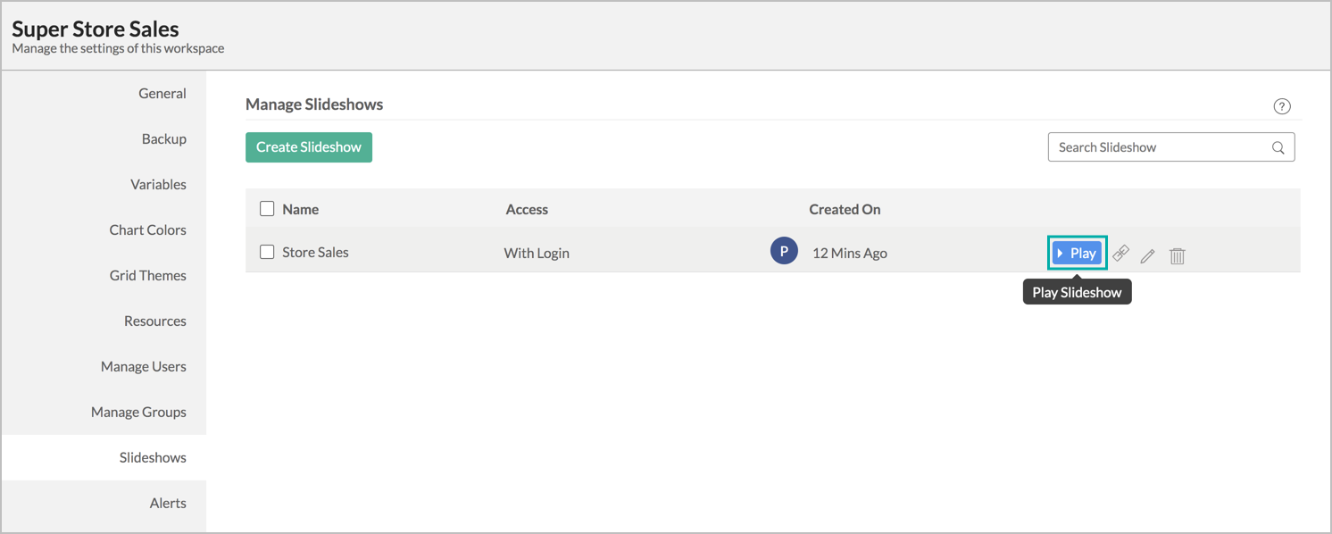 「スライドショーを削除する」アイコンをクリックして、スライドショーを削除します。