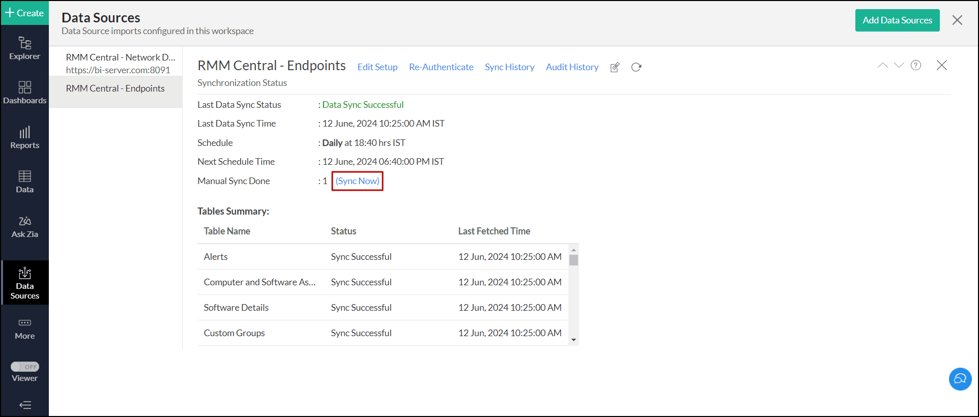 RMM Centralデータソースページにアクセスして[今すぐ同期]をクリックすることもできます。