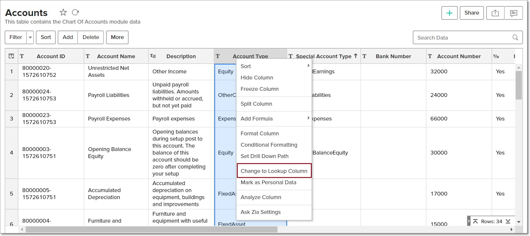 - 対応するテーブルを開き、列ヘッダーを右クリックして、 [ルックアップ列への変更]オプションを選択します。