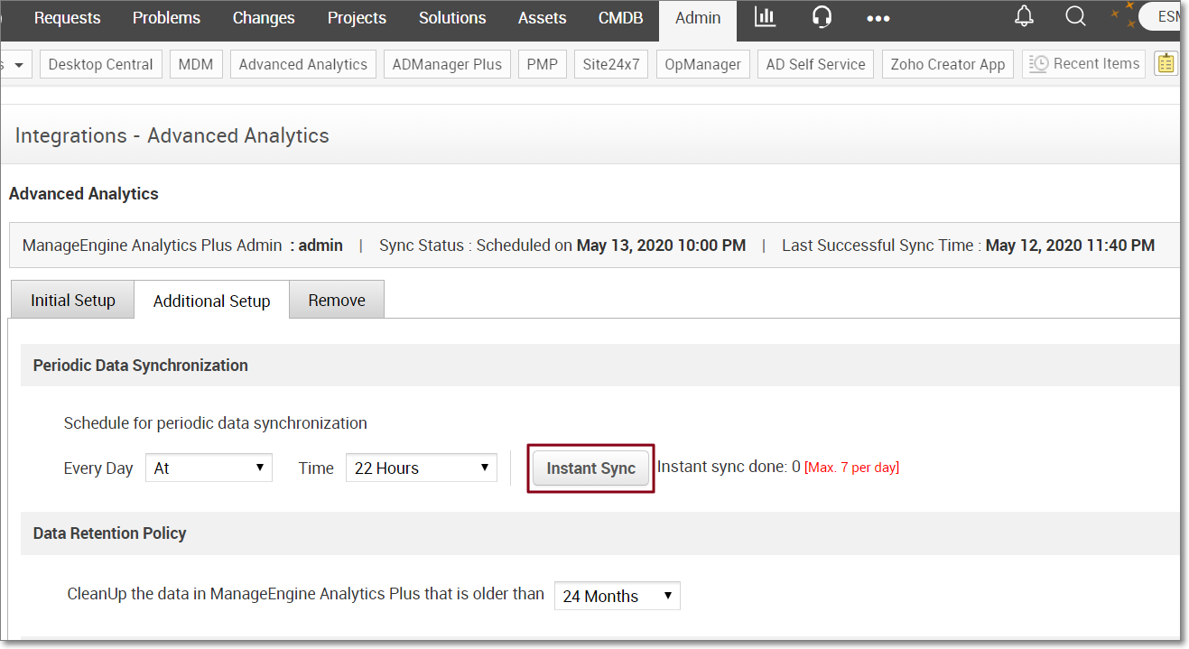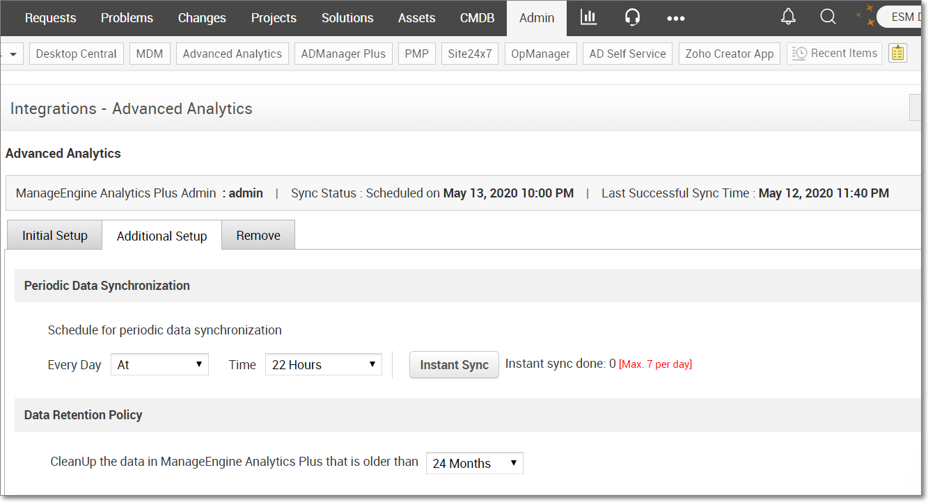 - Servicedesk PlusのデータがAnalytics Plus Cloudに表示されるにはどのくらい時間がかかりますか?