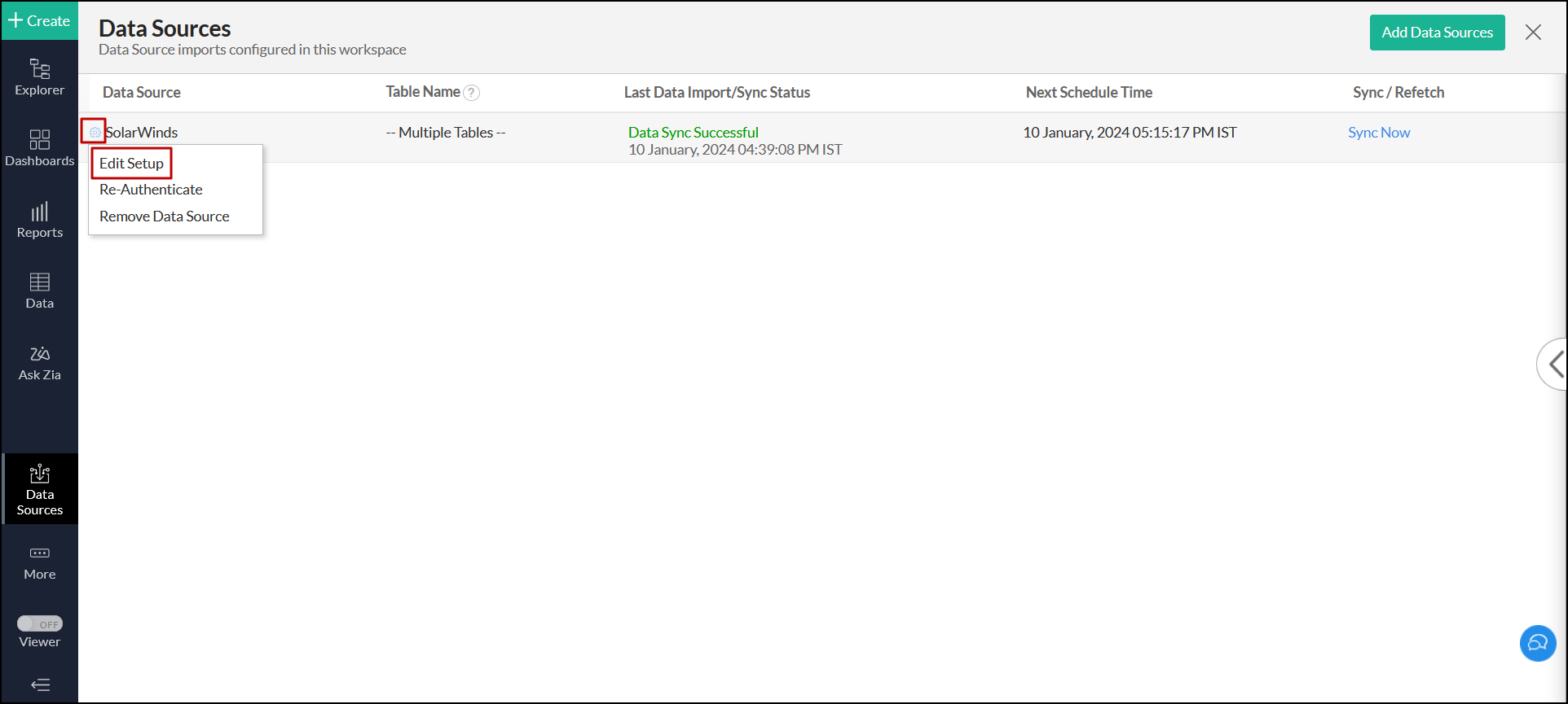 - SolarWindsデータソースに移動し、[セットアップを編集]リンクをクリックします。