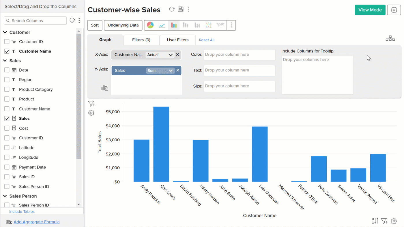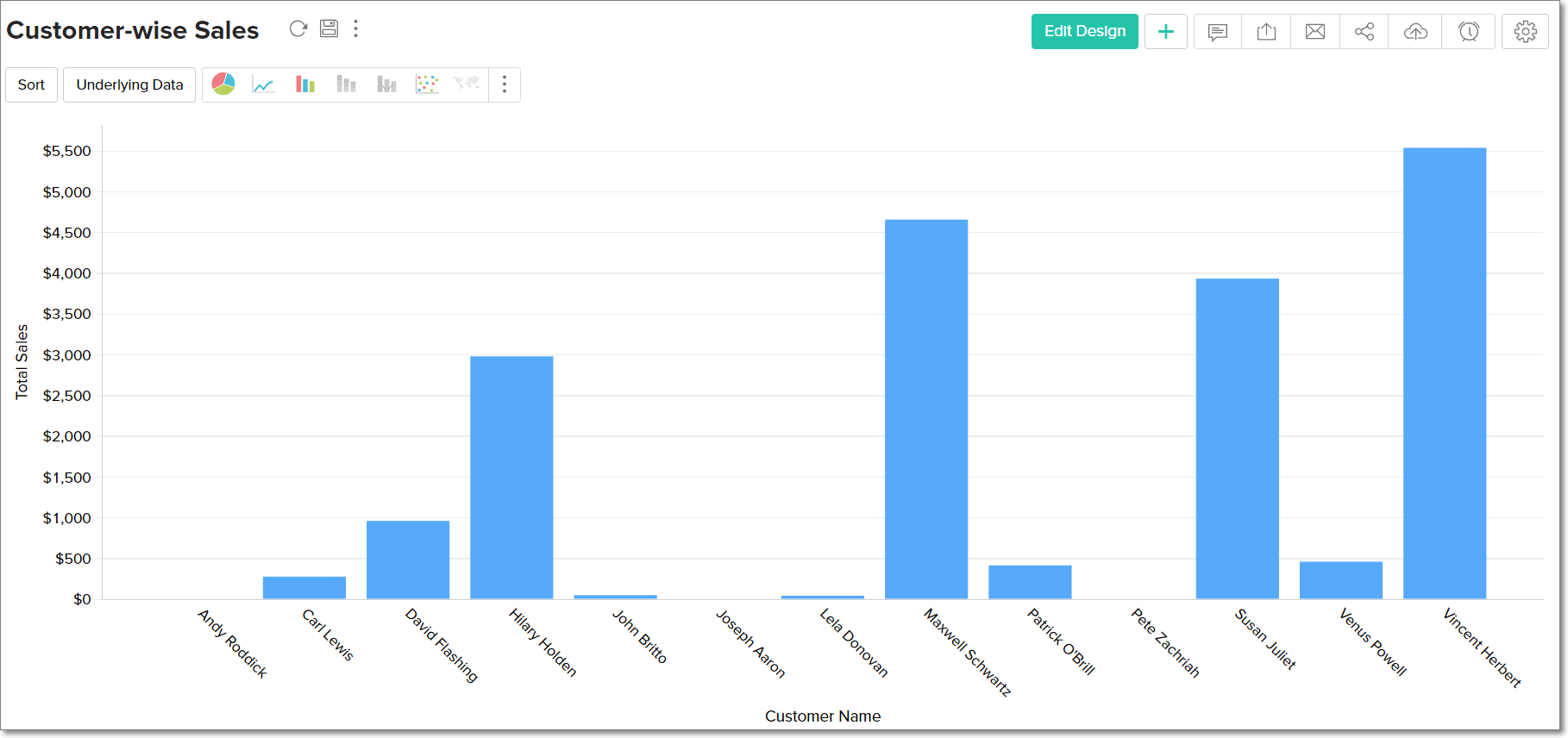 売上テーブルを開き、ツールバーの[新しいチャートビュー]オプションを選択します。