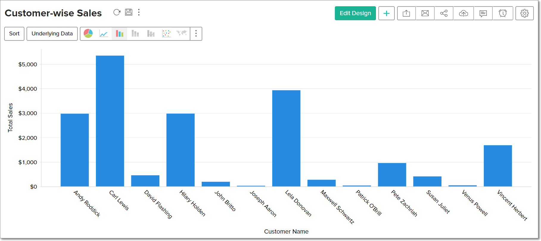 これで、下に示した顧客全体の売上レポートが生成されます。
