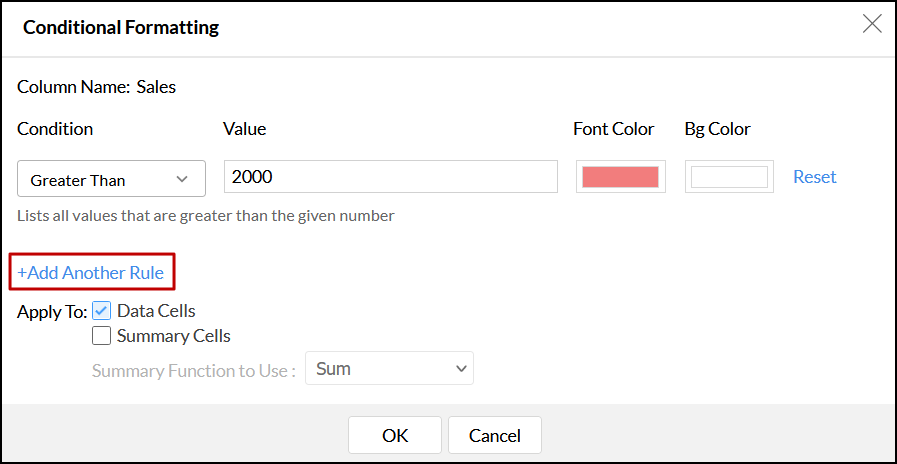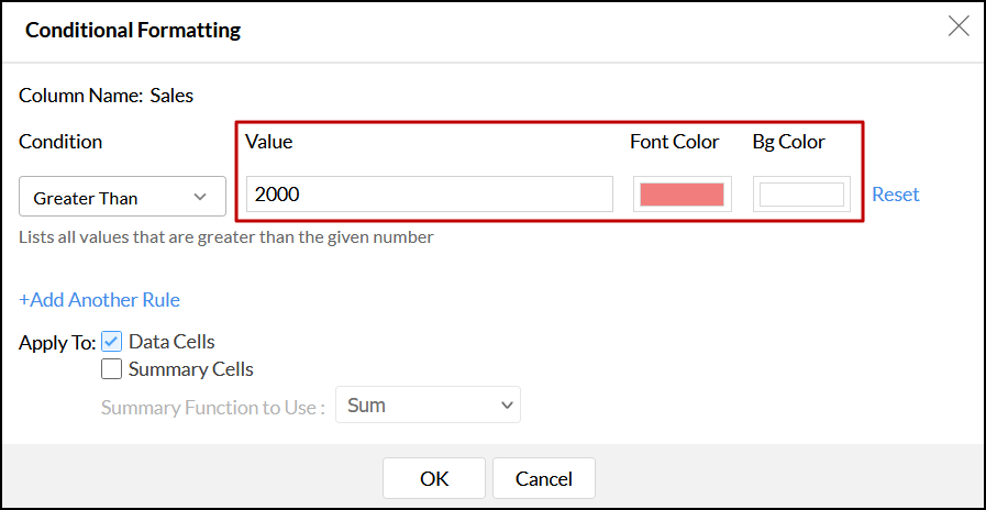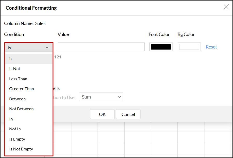 カラム内のセルに対して指定した条件にもとづいて、背景色とフォント色を強調表示できます。