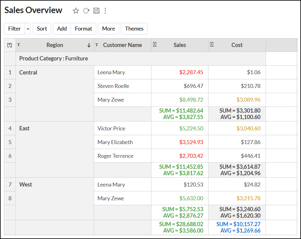 Analytics Plus Cloudでは、レポート形式の変更や並べ替え、テーマの適用など、幅広いカスタマイズオプションが用意されています。