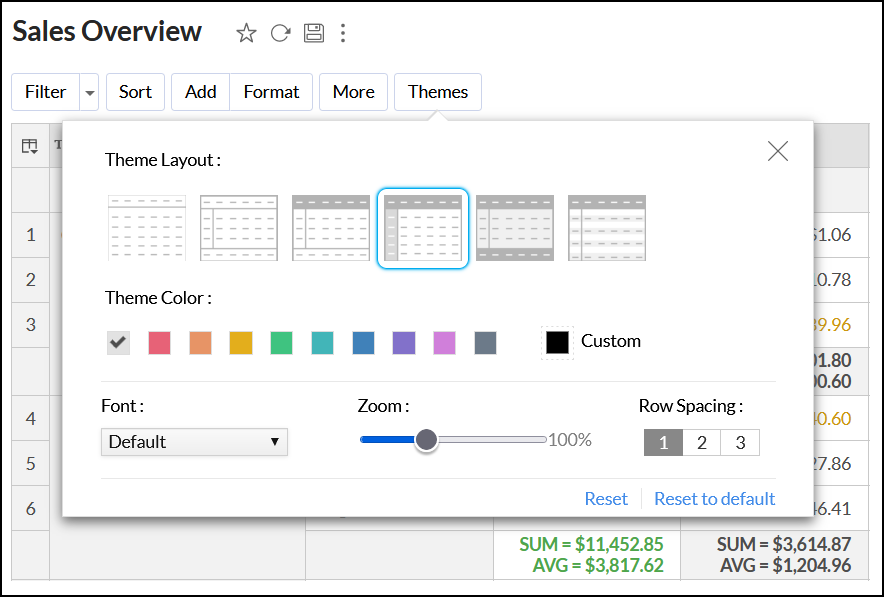 表形式レポートの外観をカスタマイズするためのオプションがあります。