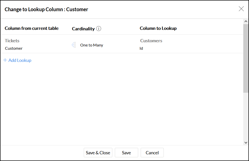 はい。このためには、新しいテーブルをTeamwork Deskワークスペースにインポートまたは追加し、ワークスペースの追加したデータと既存のデータとの間のルックアップ関係を定義します。2つのテーブル間のルックアップ関係を定義するには、テーブルには2つの間に少なくとも1つの列が共通している必要があります。以下の手順に沿って、ルックアップ関係を確立します。