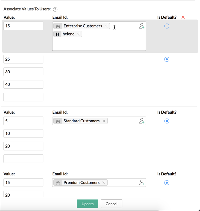 例として、様々なユーザーグループまたは個別のユーザーに対して異なる割引の値を定義できます。