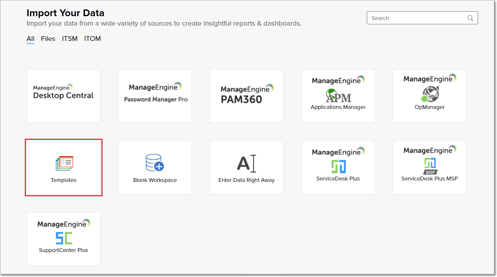 ManageEngine Analytics Plusには、ワークスペースを簡単に作成するさまざまなオプションがあります。作成するワークスペースは、ホーム画面の上部に一覧表示されます。このページでは、Analytics Plusでワークスペースを作成する各種方法について説明します。