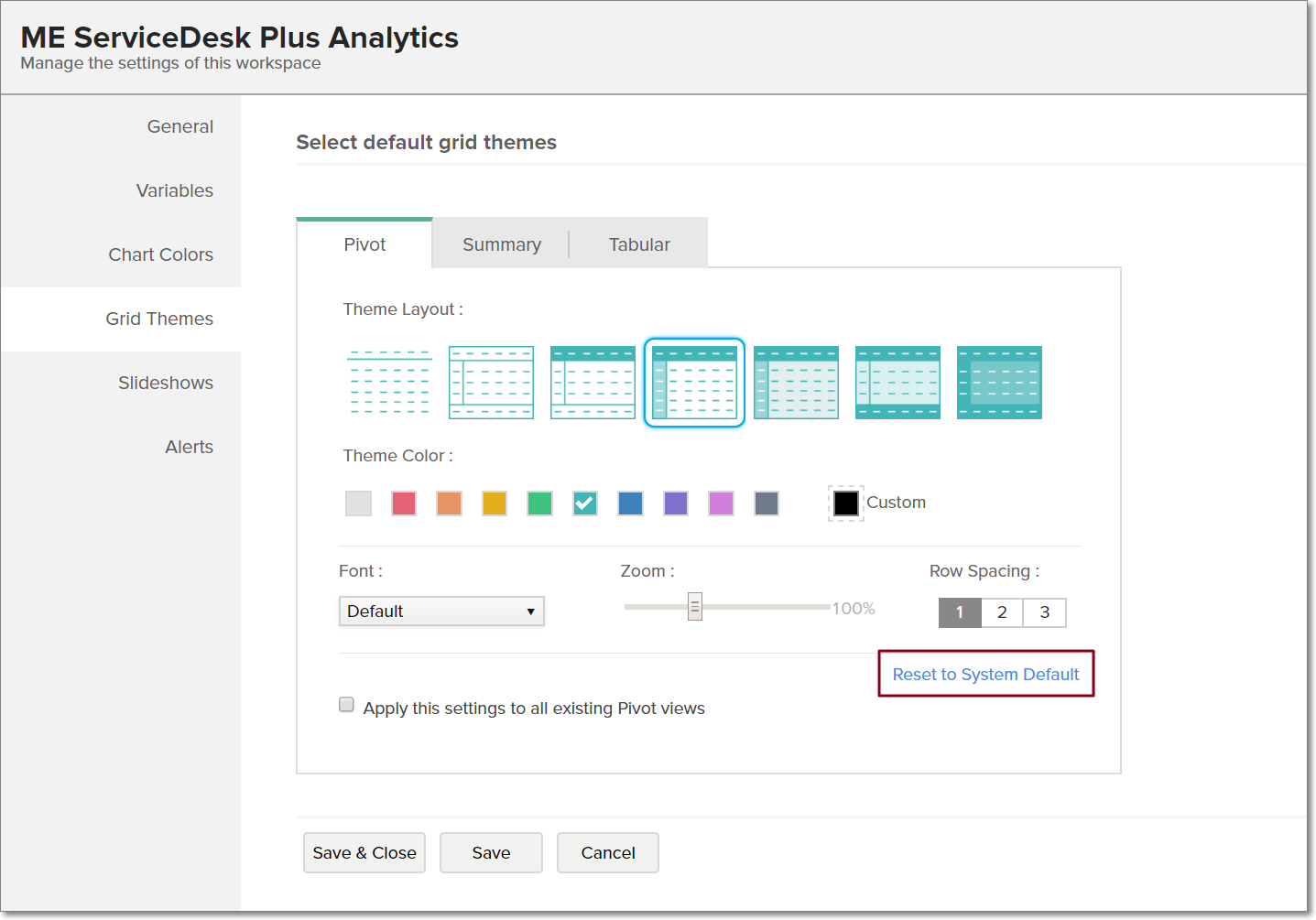 グリッドテーマをデフォルト設定にリセットするには、[システムデフォルトにリセット]オプションをクリックします。