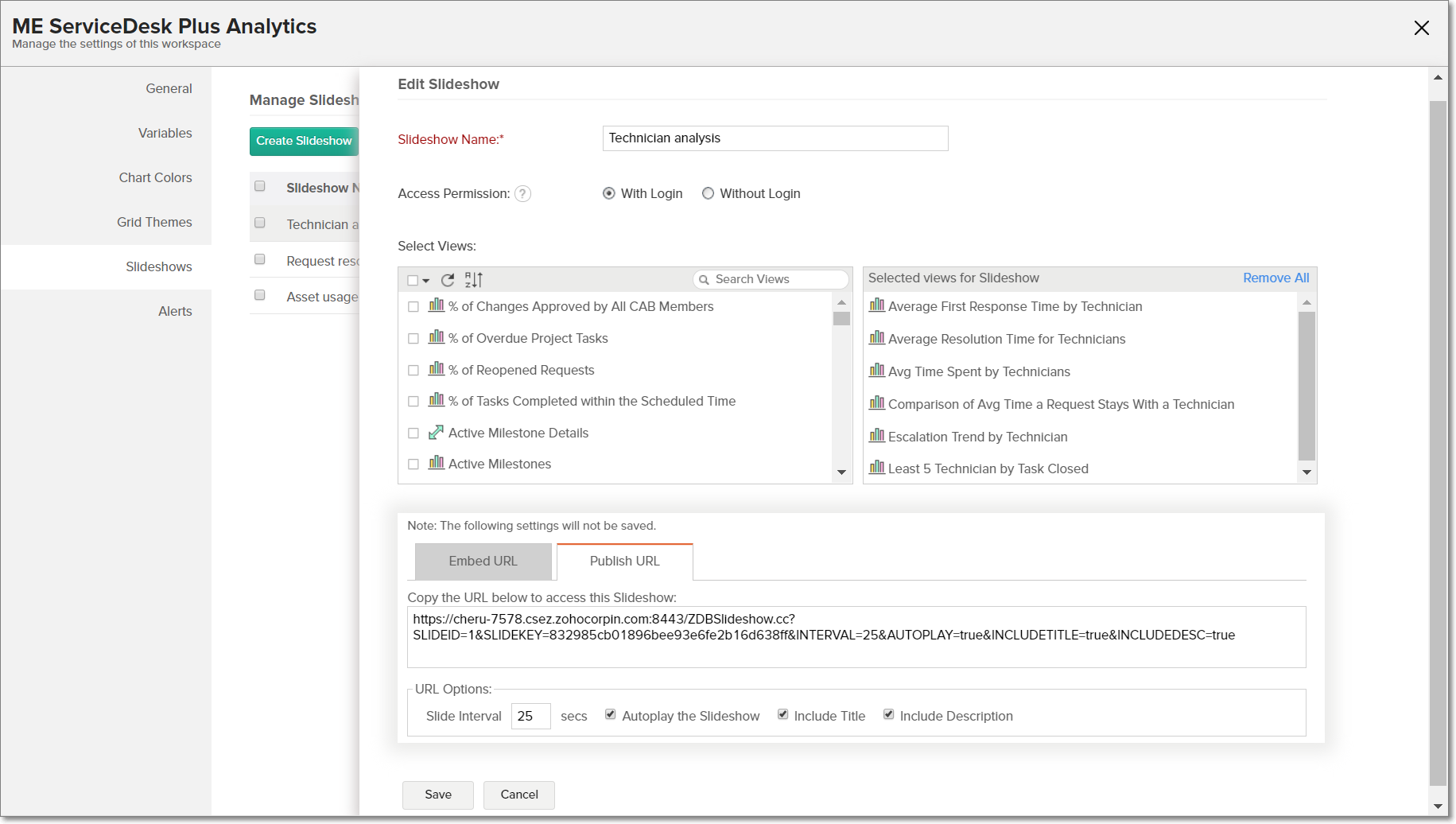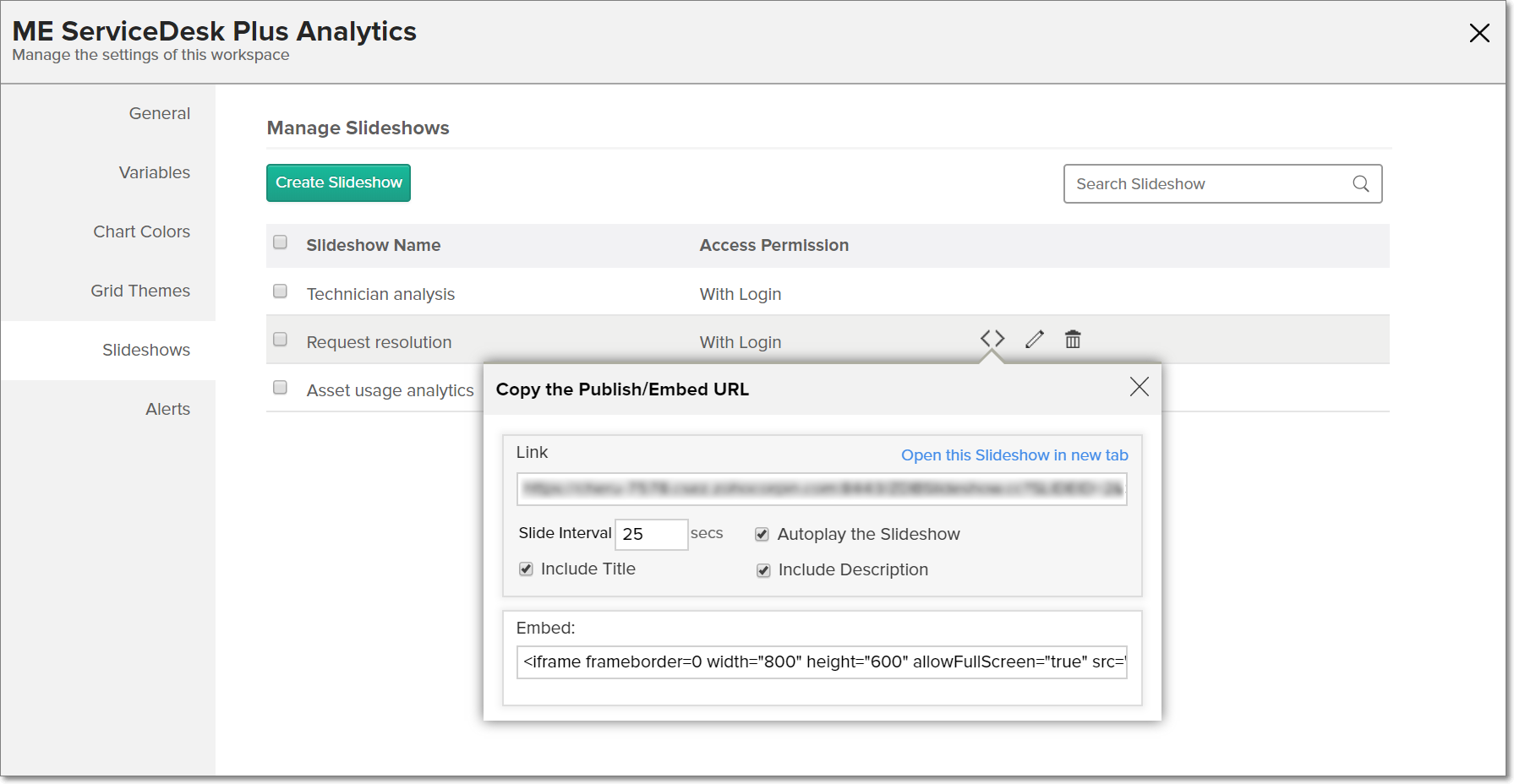 - 公開/埋込み URLを取得:このオプションでは、スライドショーの埋込み