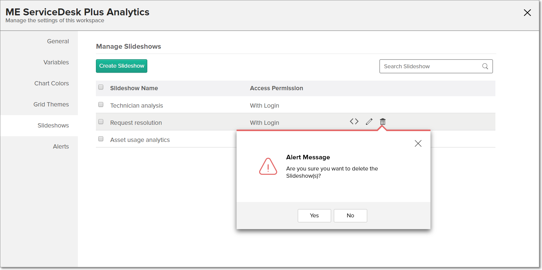 - スライドショーを削除:このボタンをクリックしてスライドショーを削除し、表示されるポップアップで操作を確認します。