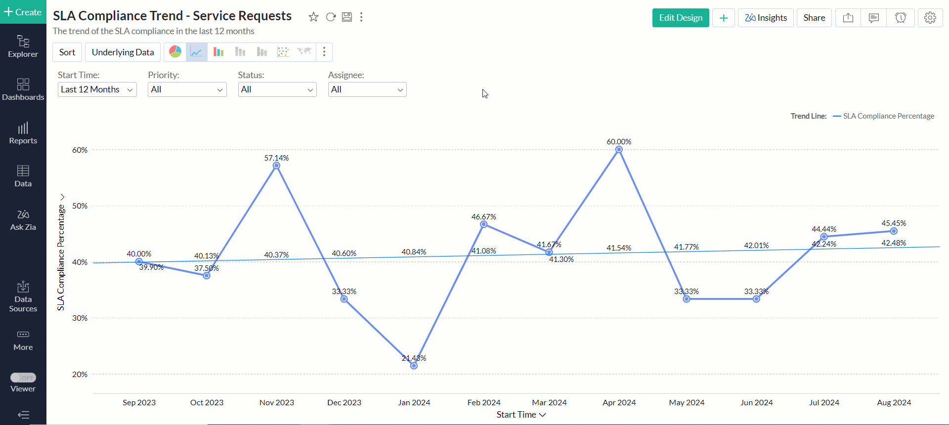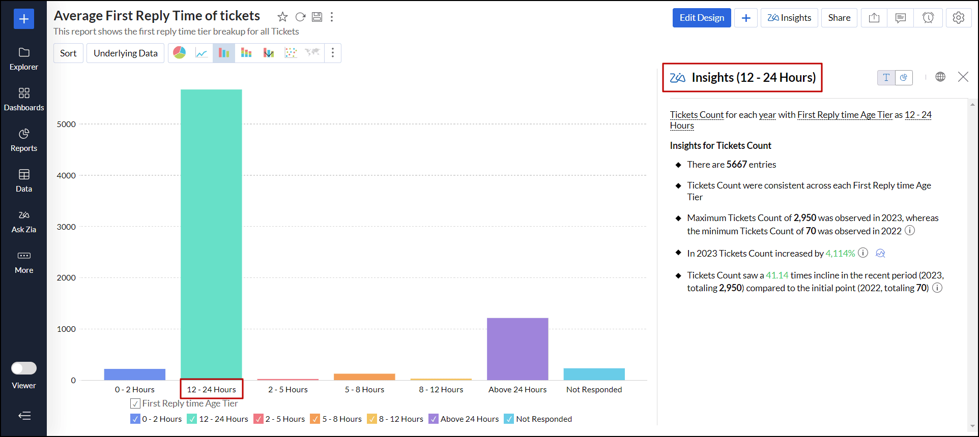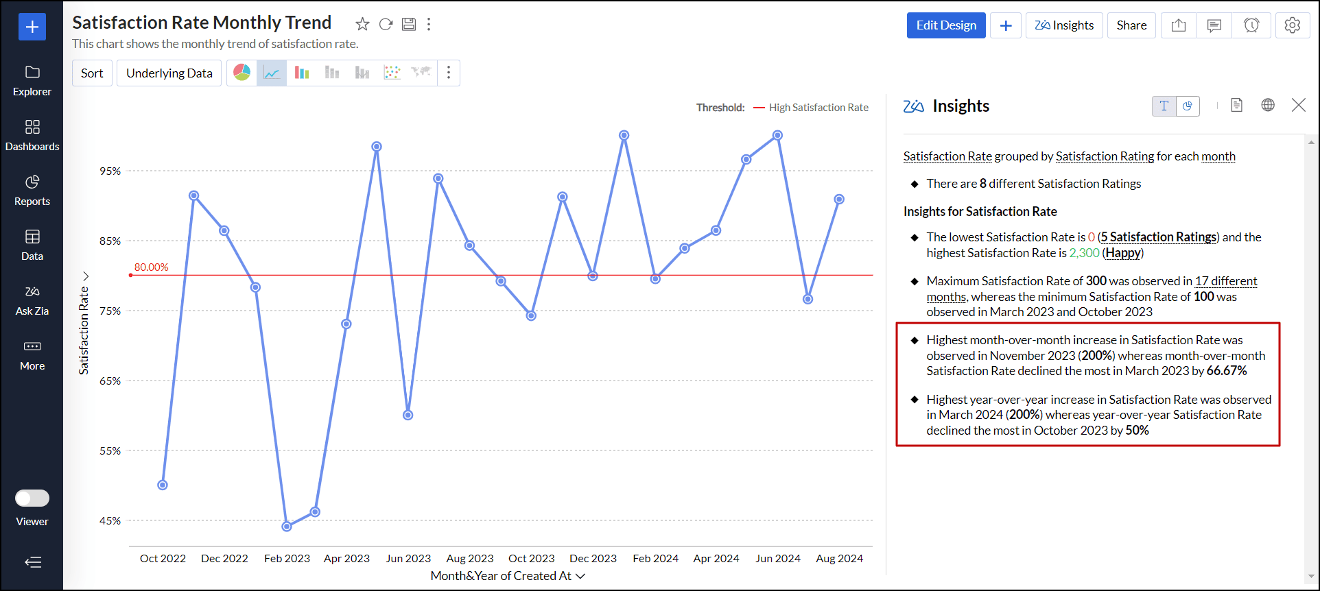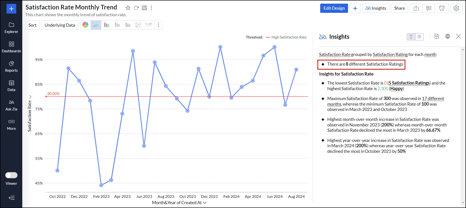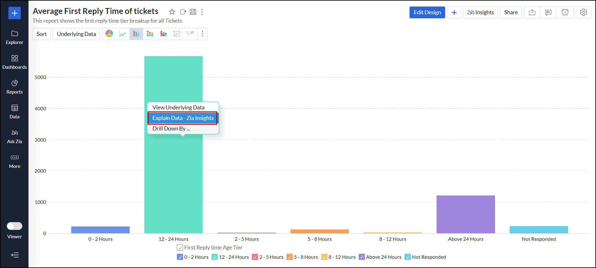 - レポート内のデータポイントをクリックし、[データの説明 - Zia分析]を選択します。