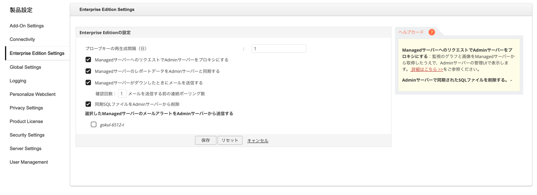 [設定]→[製品設定]→[Enterprise Edition Settings]