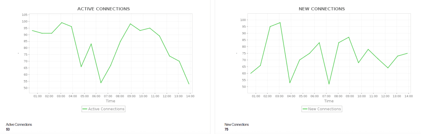 また、エンドポイントの監視と同様に、処理データ量やデータ処理速度を通じてデータフローを確認したり、アクティブな接続数や、新しく確立された接続数を監視したりできます。
