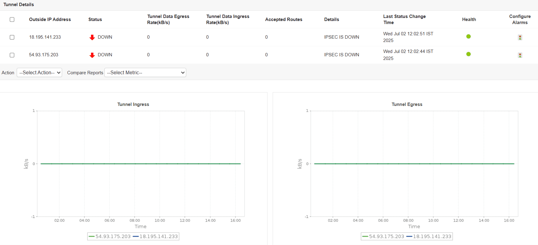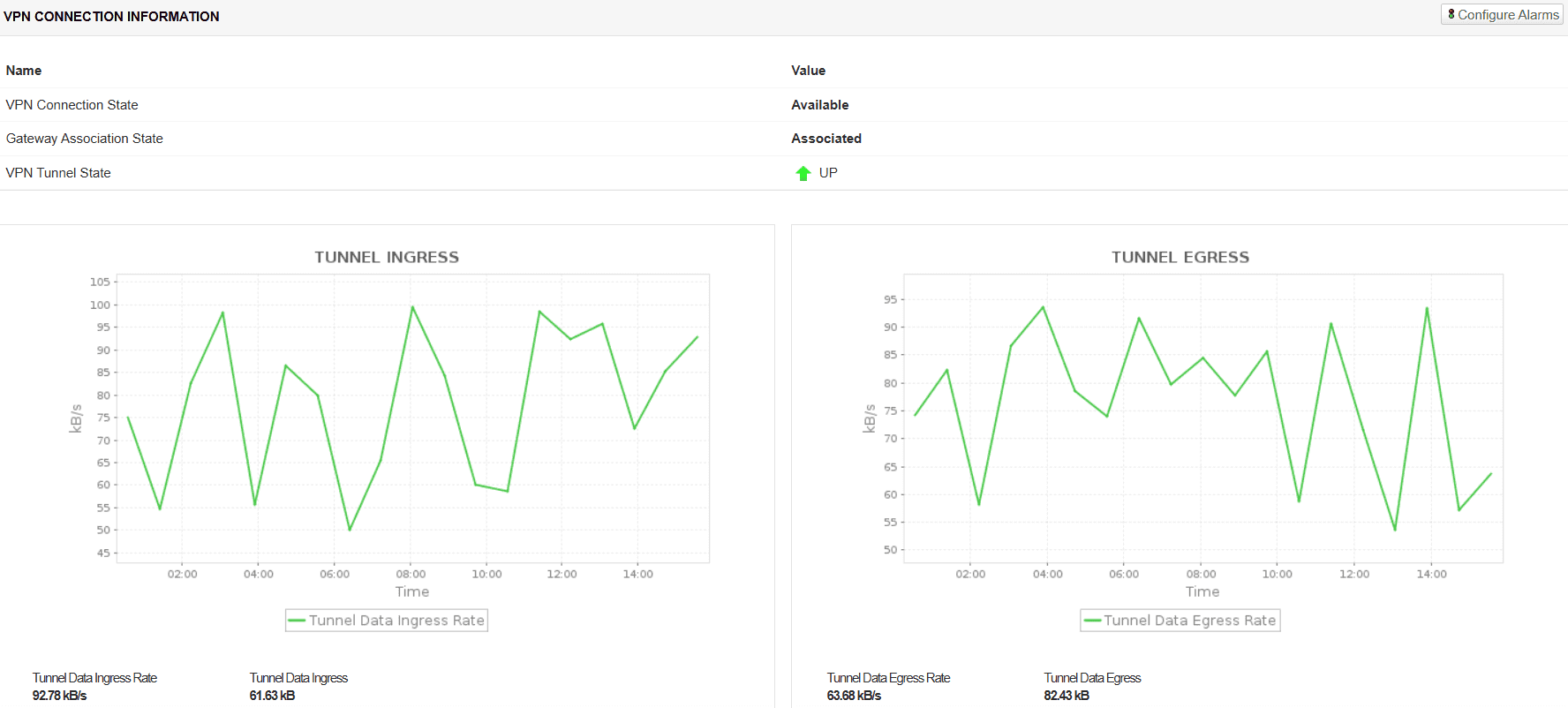 Applications Managerにより、これらのトンネルの状態やパフォーマンスを監視できます。トンネルの状態、データ転送速度、トラフィックを可視化し、オンプレミスのインフラストラクチャとAWSリソース間で、安定して安全な通信を確保するのに役立ちます。