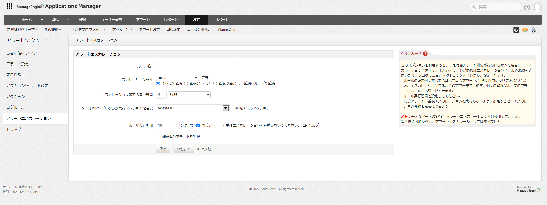 以下の手順でアラートエスカレーションを設定します。