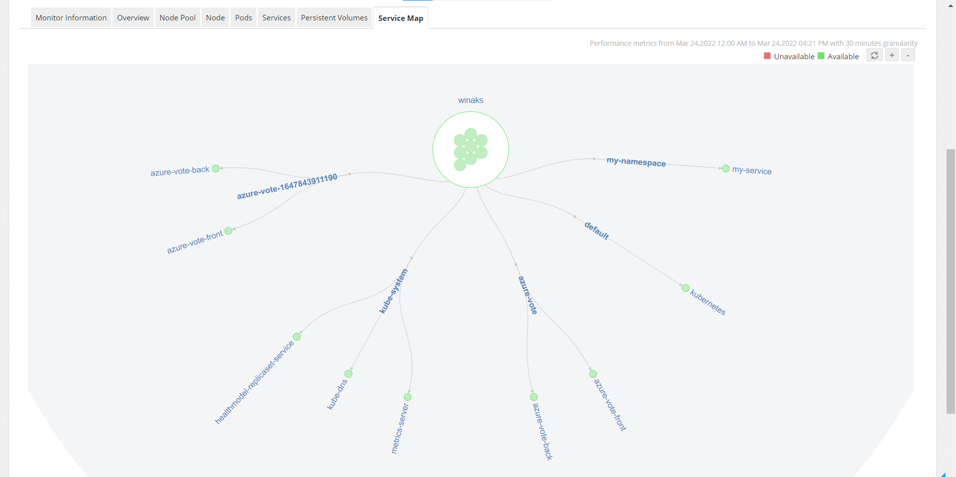 - 名前空間とサービスの詳細を含むグラフィカルマップビューを表示