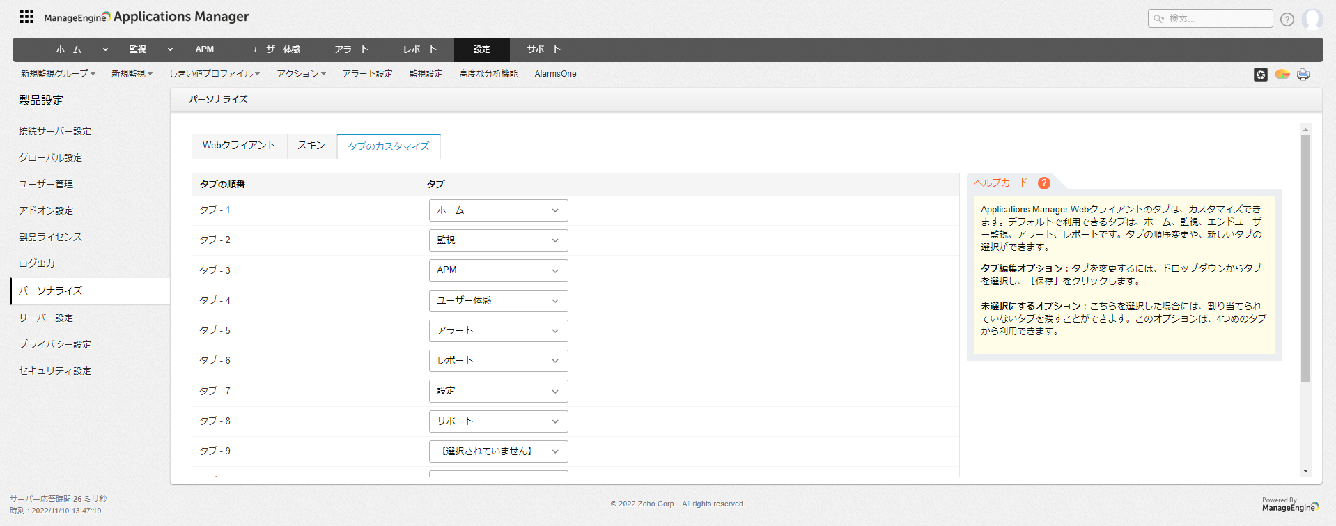 Applications ManagerのWebUIで表示する言語や色、メニュータブの項目をカスタマイズすることができます。