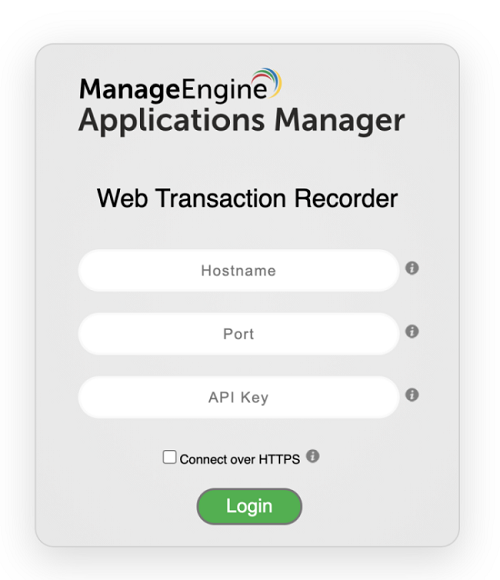 • ホスト名とポートを入力すると、ログインボタンの上にAPIキーを取得するオプションが表示されます。このオプションを選択すると、Applications Manager画面に遷移し、APIキーを取得できます。