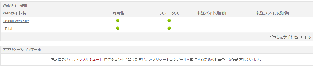 - Webサイトの可用性は、アプリケーションプールの状態によって異なります。