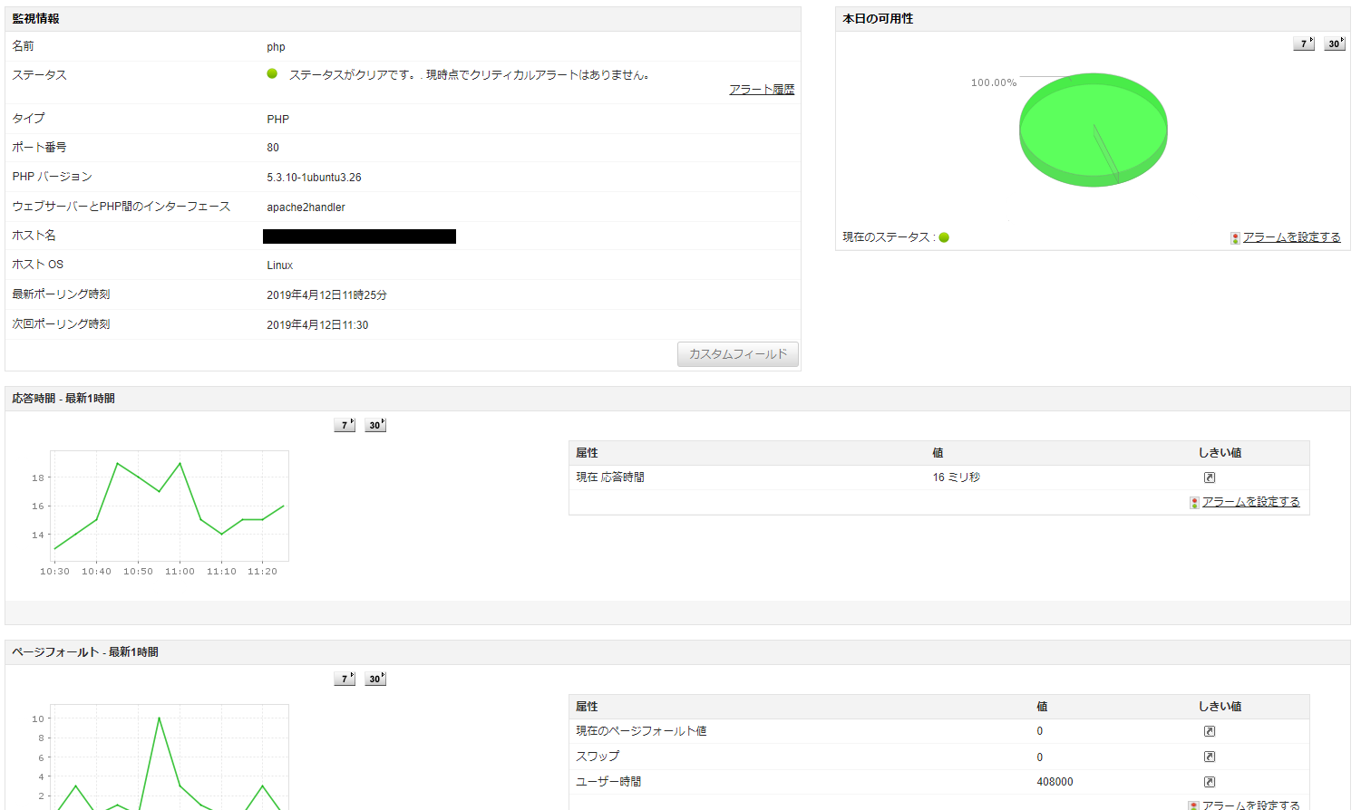 - PHPの可用性、応答時間とパフォーマンス統計を監視します。これらの属性にしきい値を設定できます。