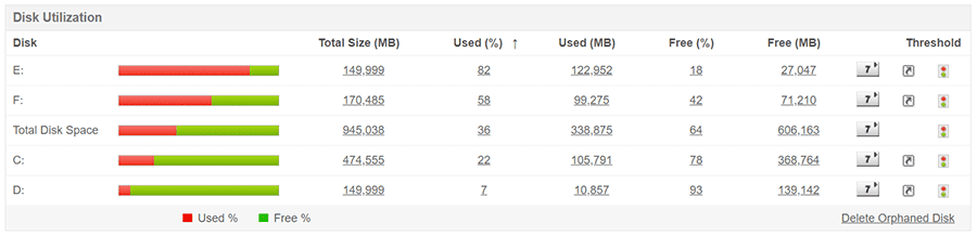 様々なレポート機能を利用可能です。トレンド分析レポートでは、サーバー内の様々なパフォーマンスの傾向を把握できます。予測レポートは、サーバーのディスクの使用状況を予測します。