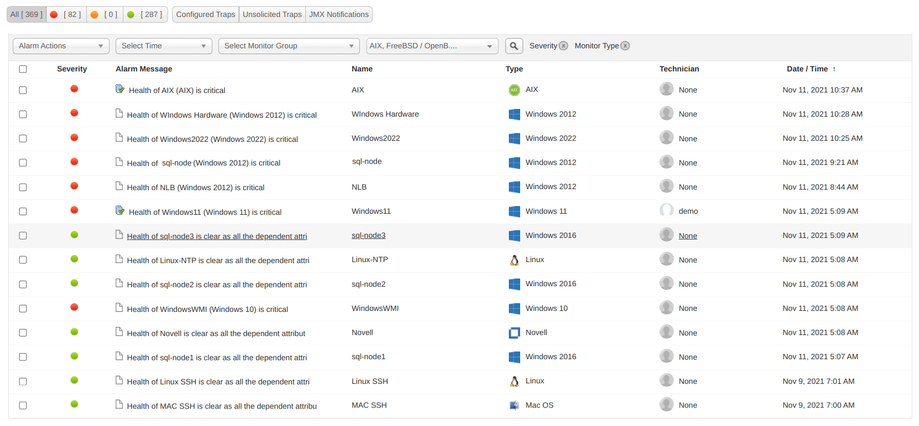 主な監視項目