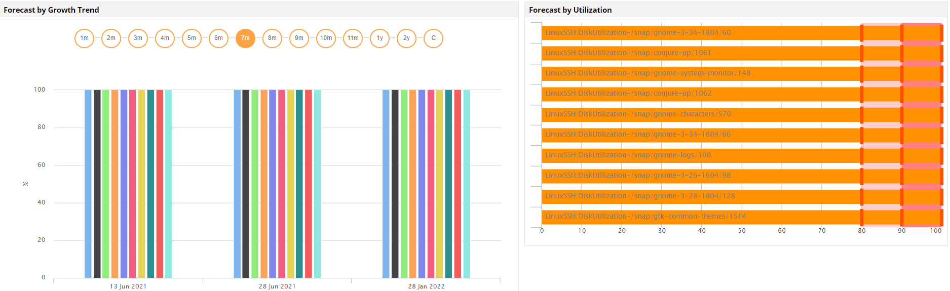 キャパシティプランニングレポートにより、過剰または過少に利用されているサーバーを特定し、負荷分散とリソース割当てを適切に実行できるようなります。さらに、カスタムレポートを作成し、指定した間隔に基づいてレポートの自動生成をスケジュール設定することもできます。