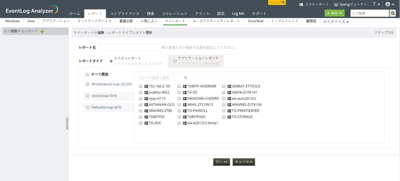 EventLog Analyzerにより、レポートをカスタマイズすることができます。これにより、設定済みのレポートを修正して、ニーズに合わせることができます。自分自身のカスタムレポートを作成するのではなく、既存の設定済みレポートをカスタマイズすることもできます。