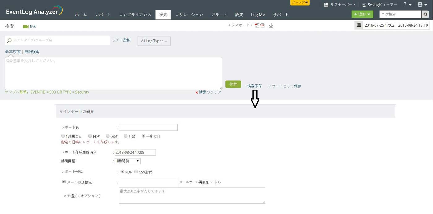 ログ検索により、大量のログを絞り込んで、必要なものを見つけることができます。EventLog Analyzerでは、検索クエリをアラートプロファイルとして簡単に保存することができます。
