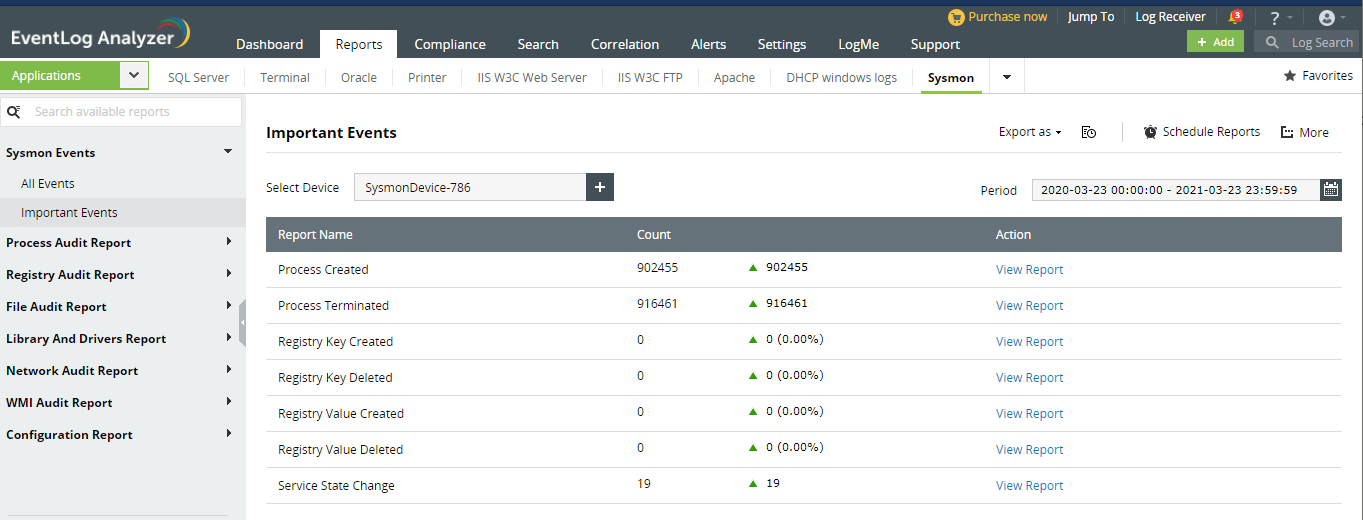 SysmonがインストールされているデバイスをSysmonアプリケーションとして追加することで、Sysmonが監査する内容をレポートで確認できます。