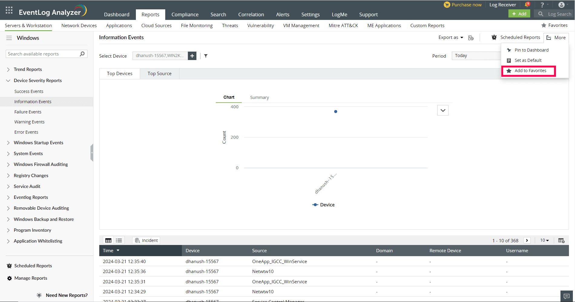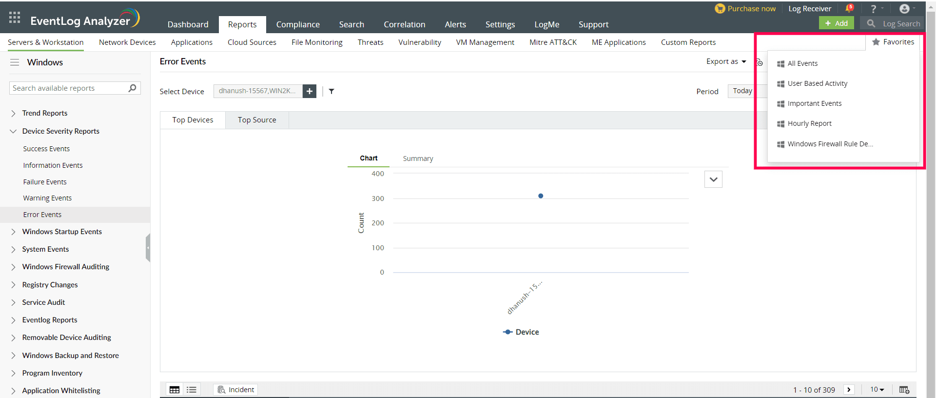 注記:EventLog Analyzerの最新ビルドにアップグレードすると、ビルド11212以下のお気に入りレポートは保持されません。