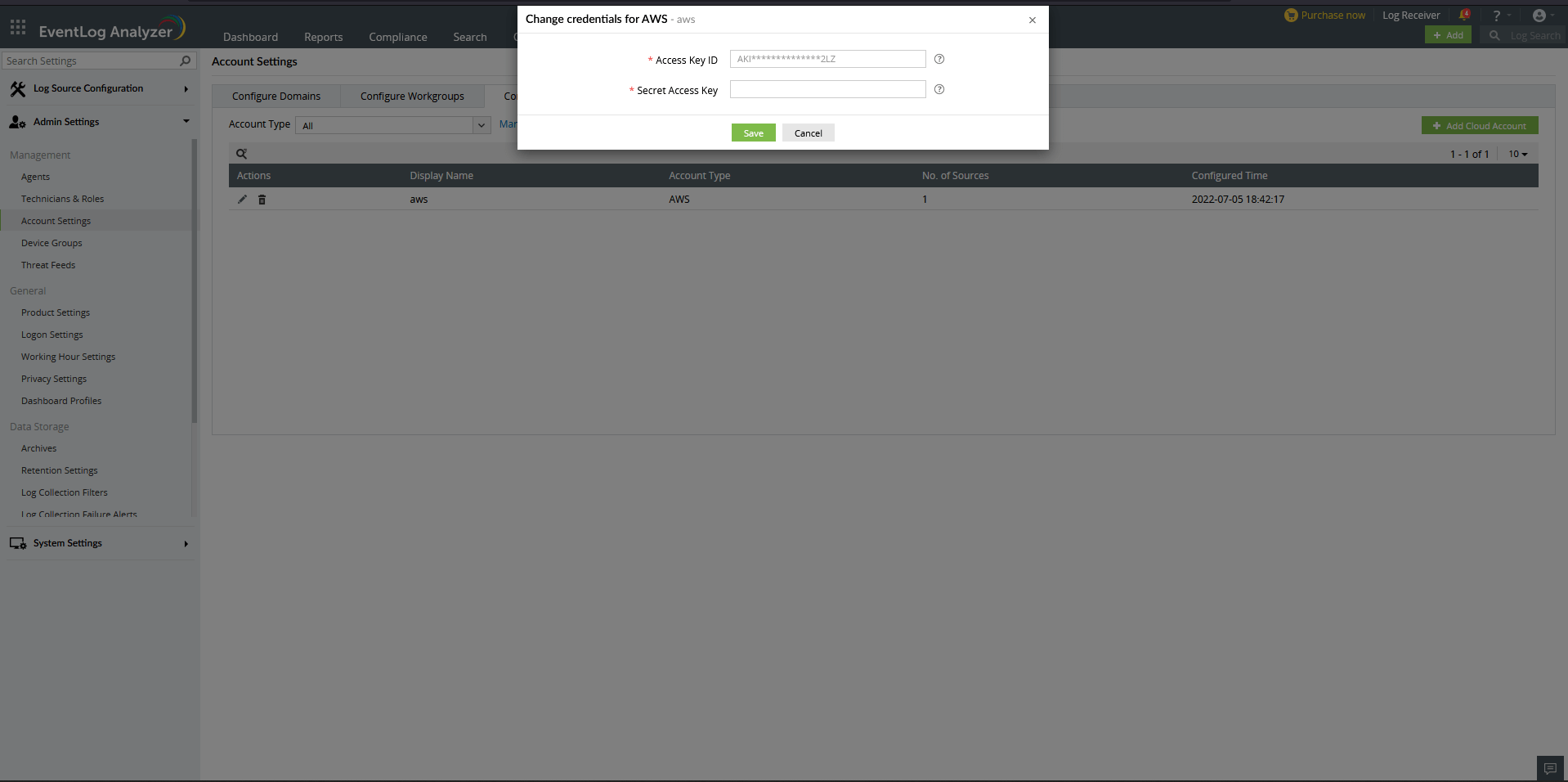 - アクセスキーIDやシークレットアクセスキーなどのクラウドアカウントの新しい資格情報を入力し、[保存]をクリックします。