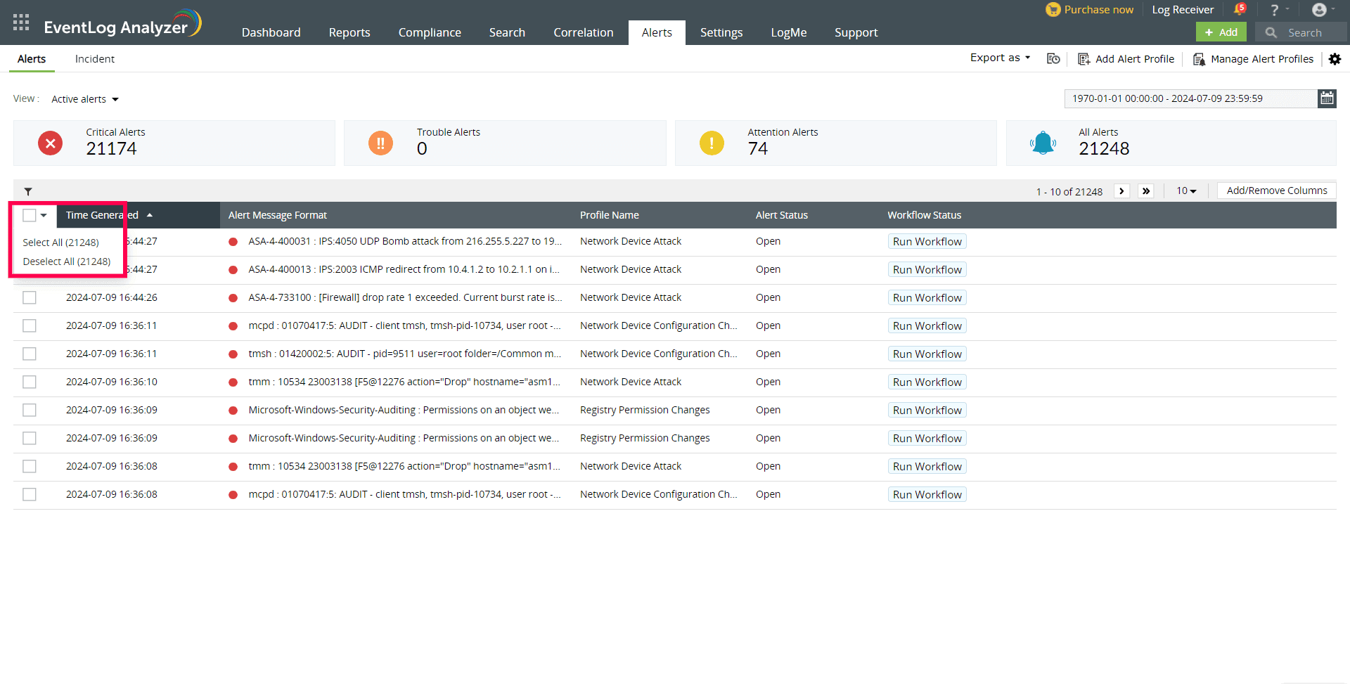 - アラートの一括削除または更新は、以下の方法でも実施できます。