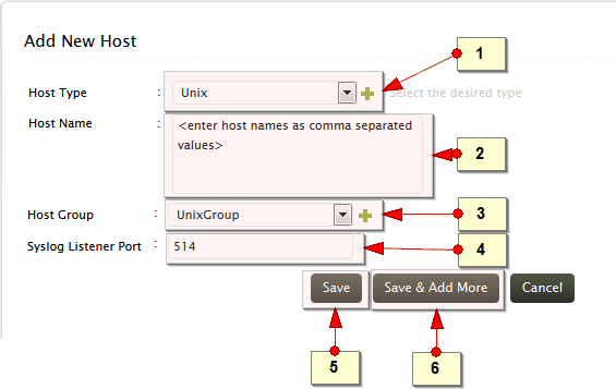 これらのホストをUNIXホストとしてEventLog Analyzerに追加することができます。 これらをホストとして追加する前に、Syslog デーモン(プロセス)がこれらのホスト / デバイスに設定されていることを確認してください。