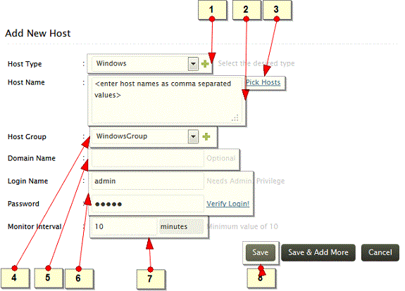 - ホスト タイプにWindowsを選択してください。 '+' アイコンを使用して新規ホストを追加することもできます。