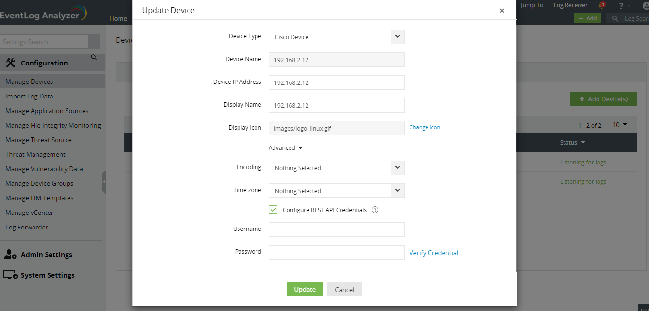 EventLog Analyzerを使用してすべてのSNMPトラップワークフローを自動化するために、以下の手順で共通の資格情報を設定できます。