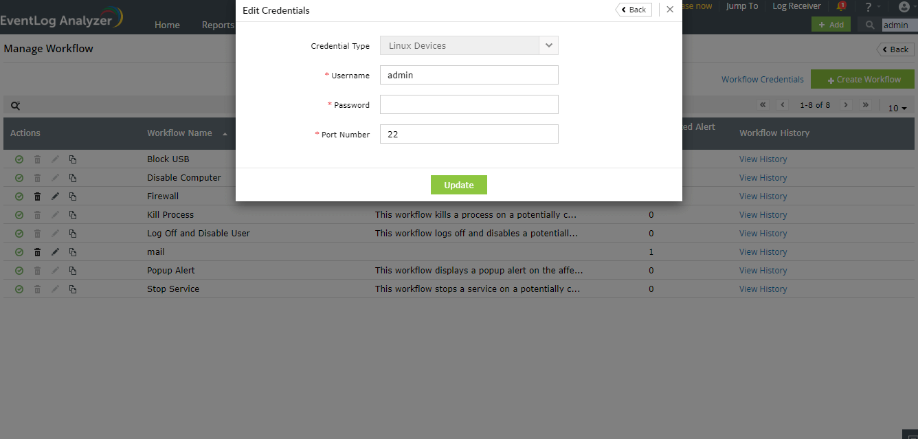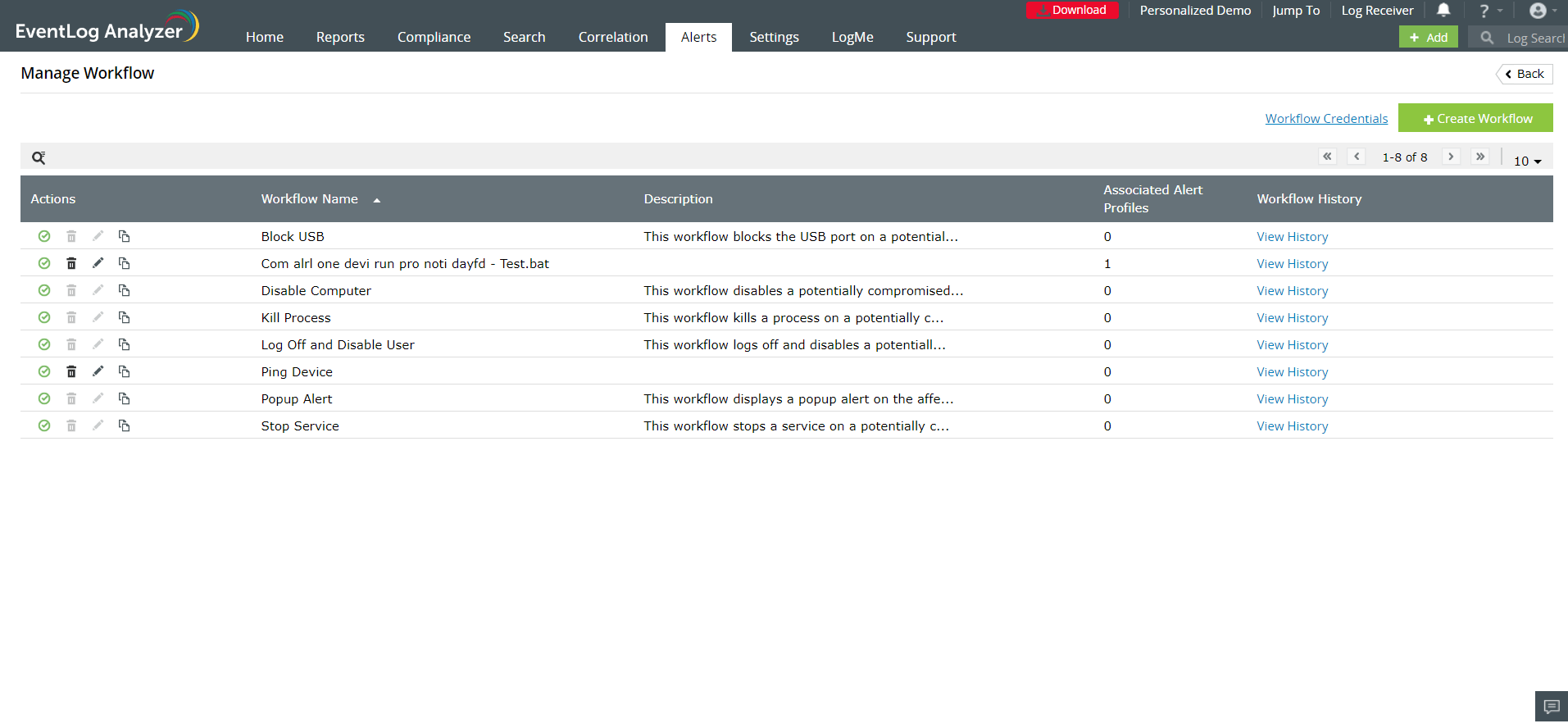 - これにより、EventLog Analyzerからワークフローアクションを実行できるようになります。