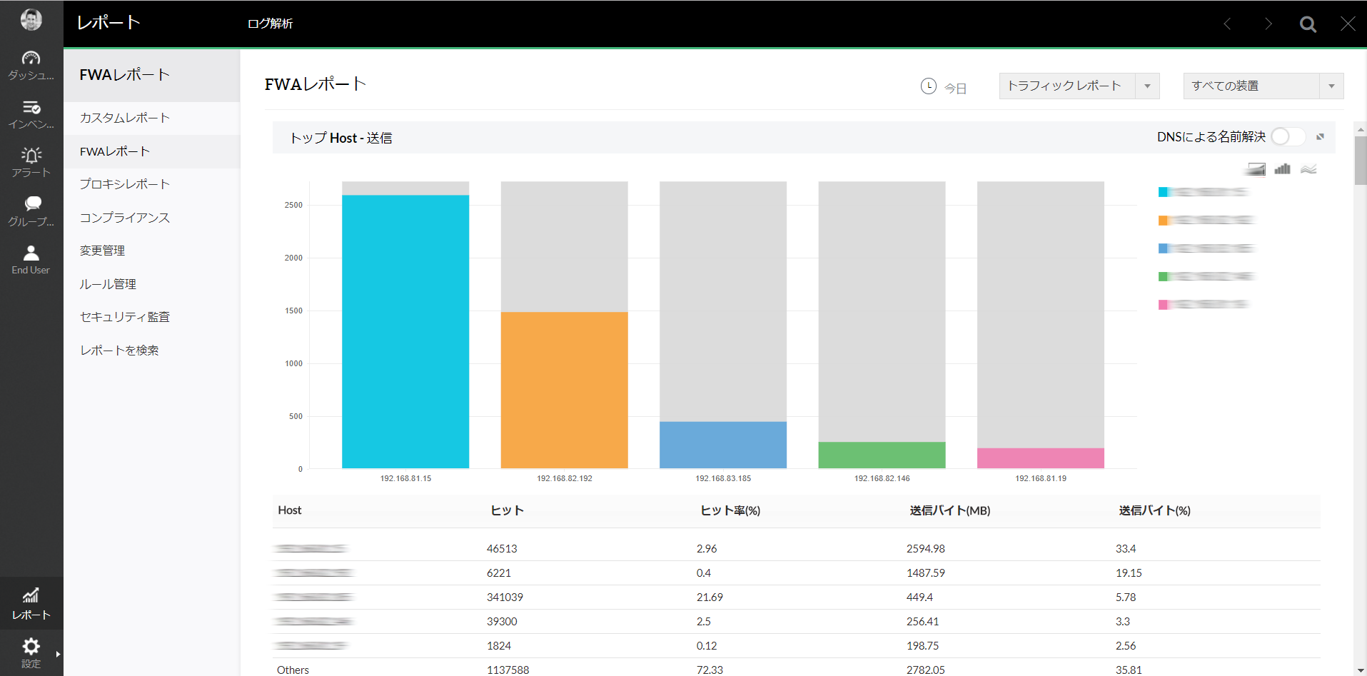 最短10分でレポート出力開始。 ファイアウォールのログ解析やルール管理に役立つ豊富なレポートを標準搭載。