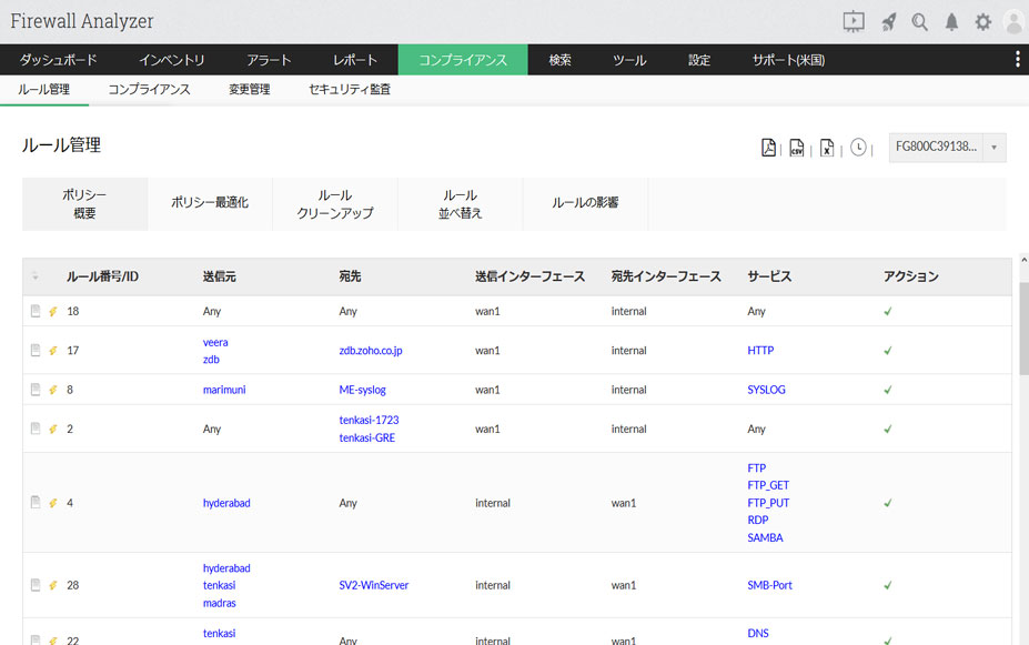 また、機器に設定されているポリシーを解析し、煩雑したポリシーの整理/管理を実現します。