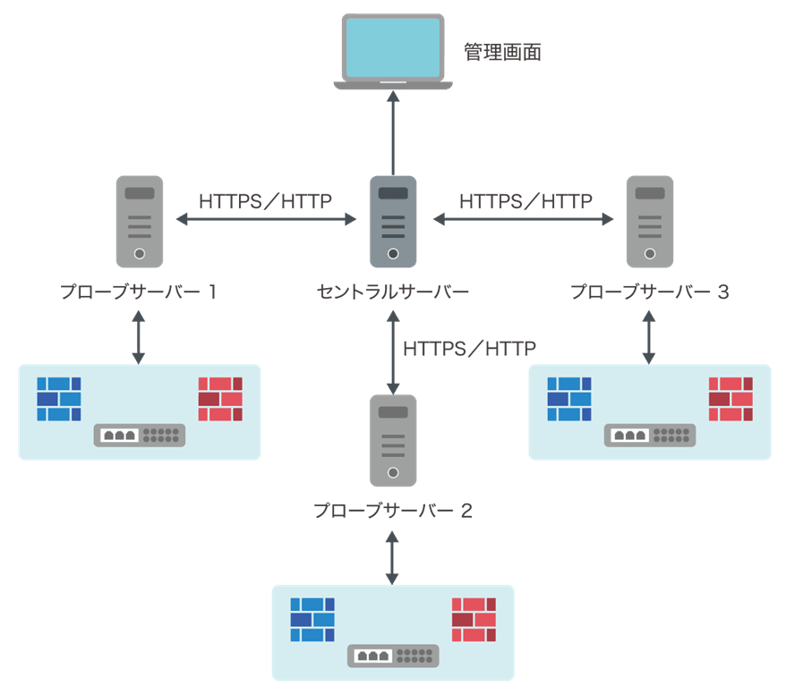 なお、利用に際して、セントラルサーバーとプローブサーバー間でHTTPS⁄ HTTPによりデータを送受信できる必要があります。